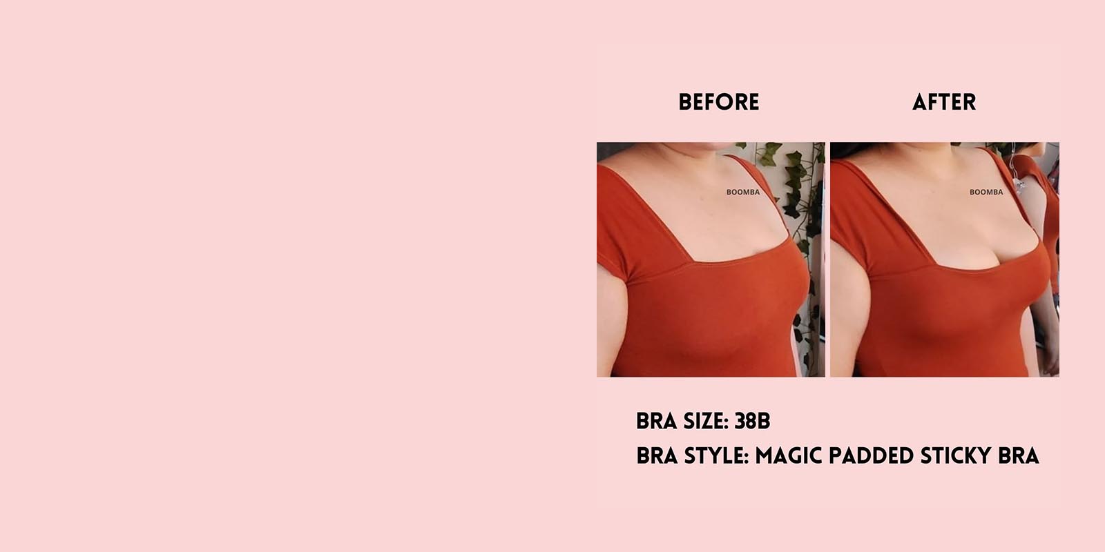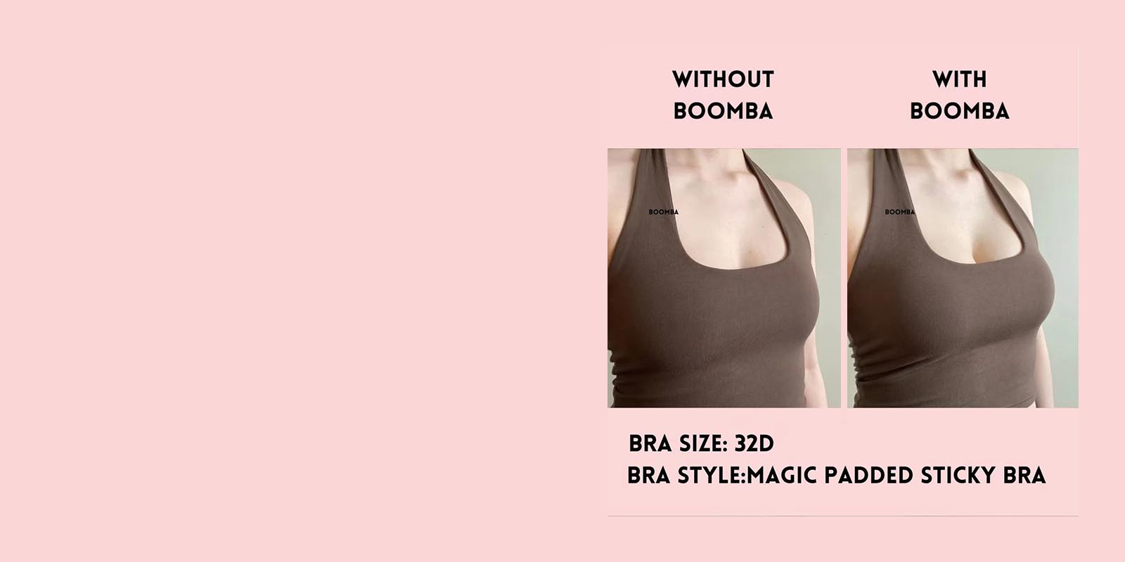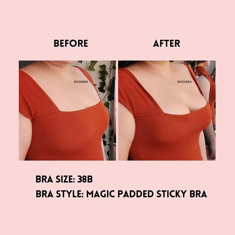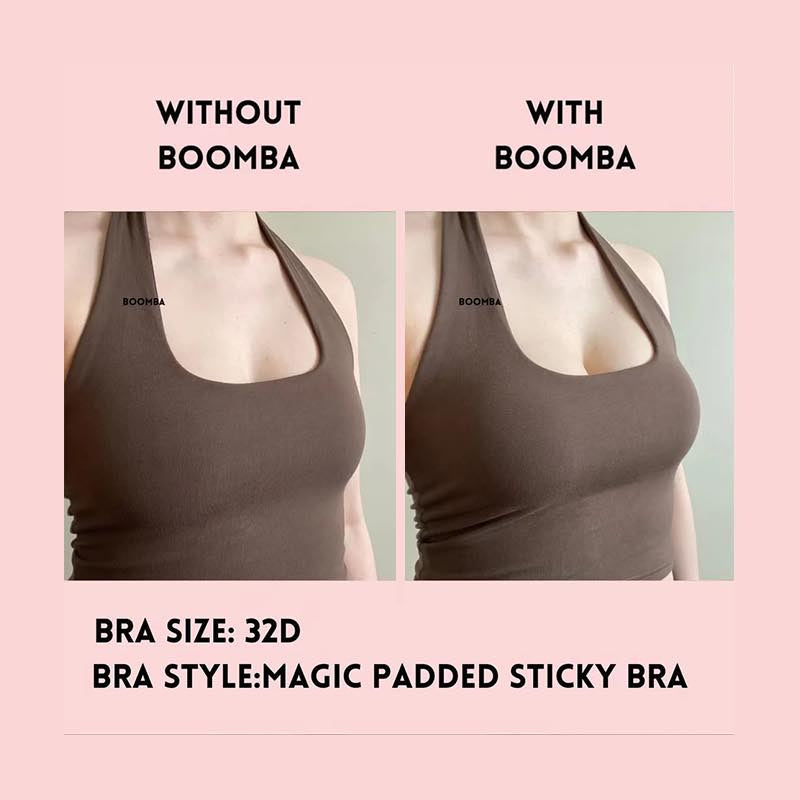 BOOMBA’s Magic Padded Sticky Bra is uniquely designed to add cup sizes discreetly.